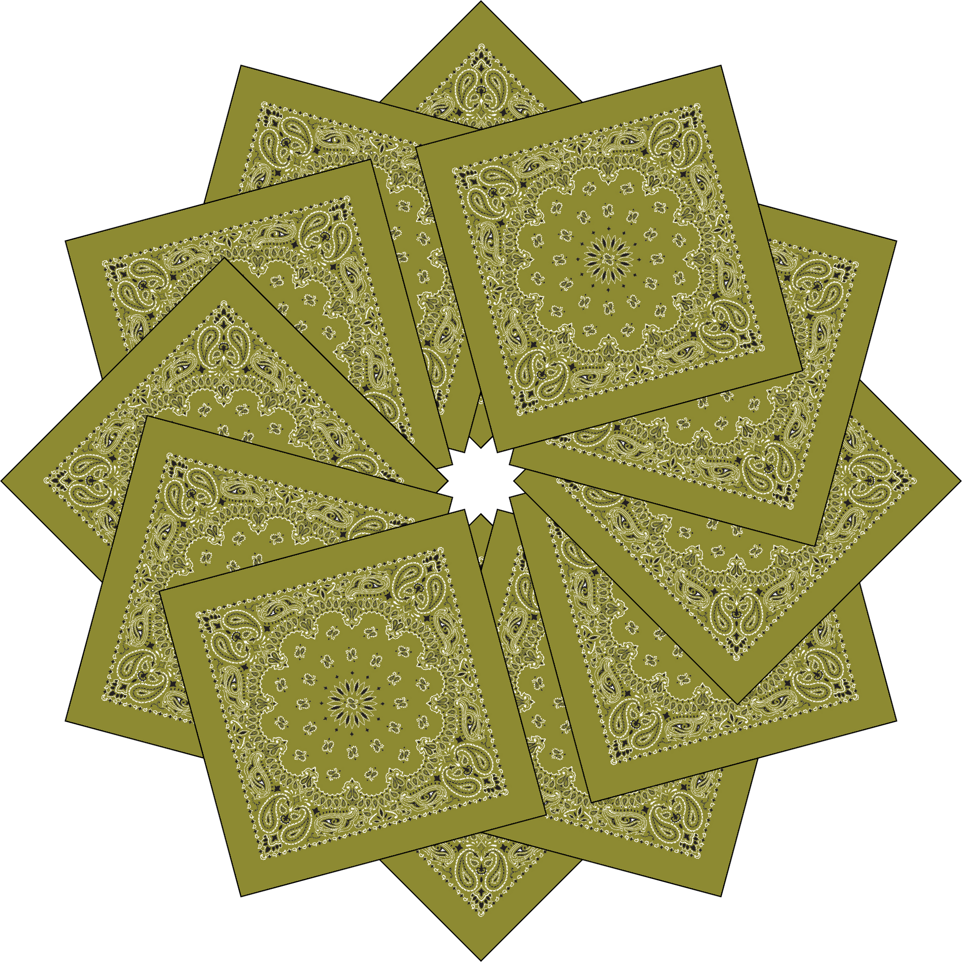 12-Pack USA Made Paisley Bandanna - OLIVE GREEN
