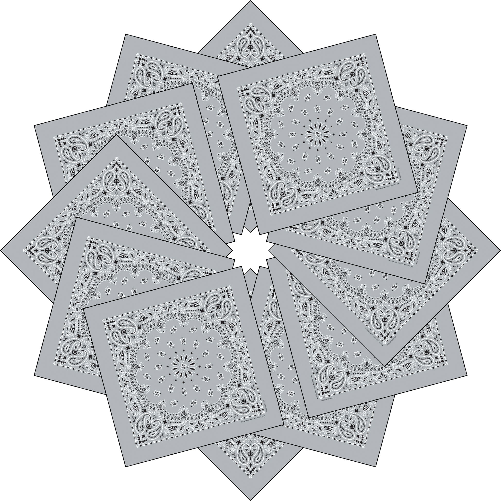 12-Pack USA Made Paisley Bandanna - SILVER