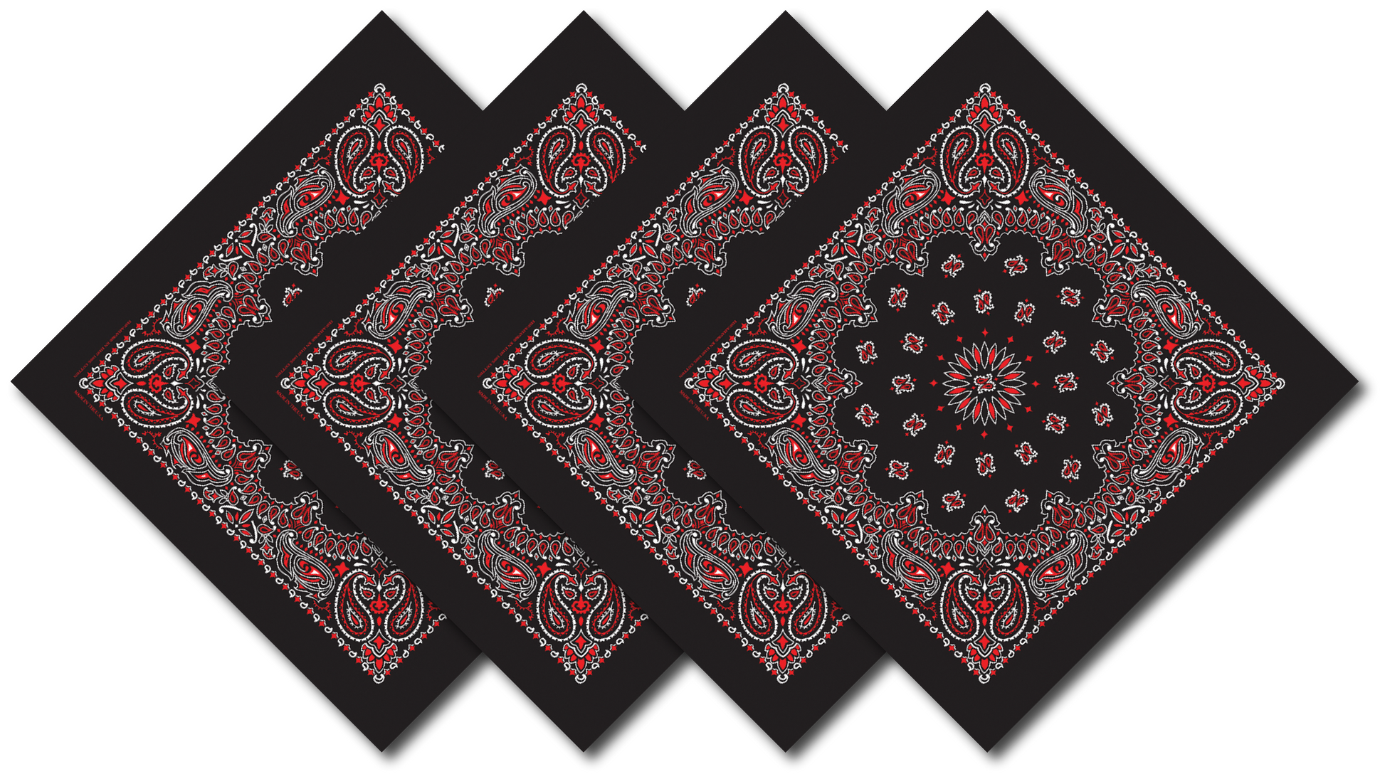4-Pack USA Made Paisley Bandanna - BLACK/RED
