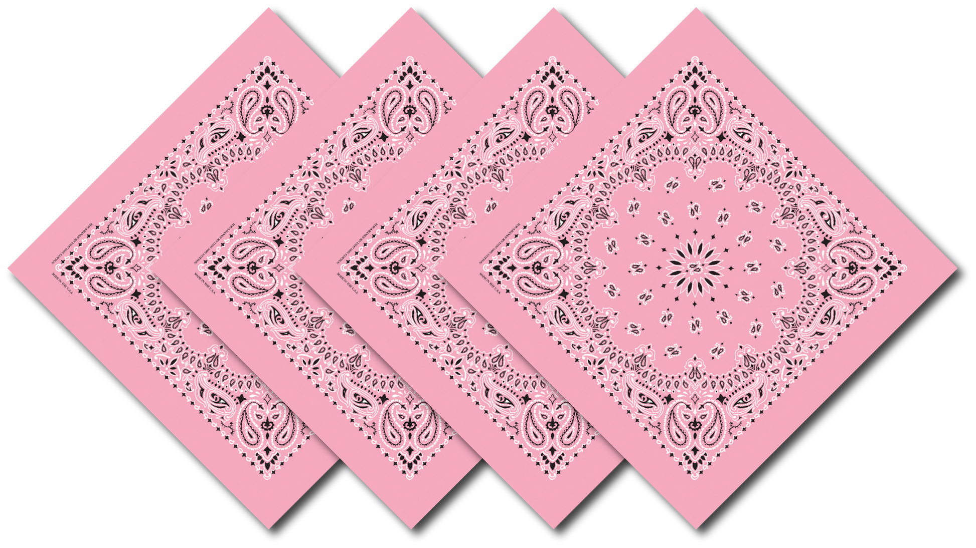 Soft pastel pink cotton bandannas, 4-pack. 22x22 inches. Great for events, gifts, or everyday wear.